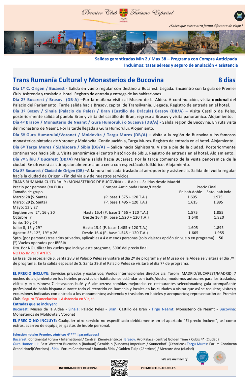 Trans Rumania Cultural y Monasterios de Bucovina - 8 dias - Salidas garantizadas - Precio final desde 1.575€